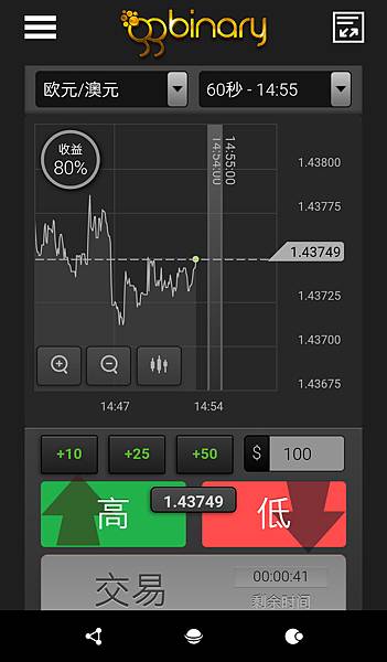 3.選擇看漲(高)或看跌(低) 點選下方「交易」