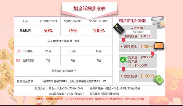 《參加資格》:月淨入金1000美金以上,即有資格參加贈金活動。